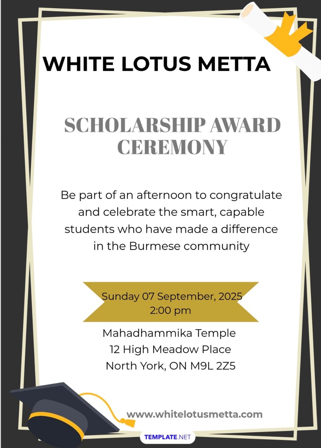 The “White Lotus Metta Scholarship” aims to financially support eligible Burmese students, pursuing post-secondary education in Ontario, Canada.